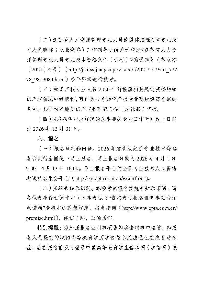 关于2026年度高级经济专业技术资格考试考务工作有关事项的通知
