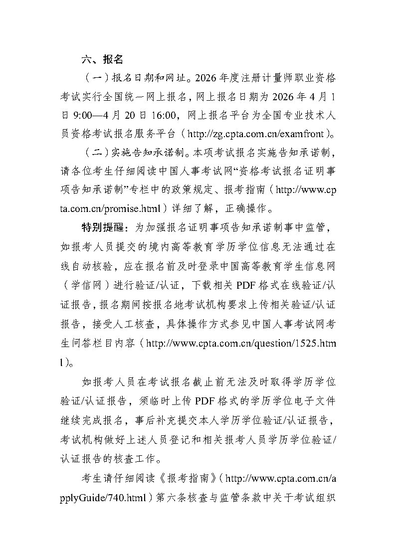 关于2026年度注册计量师职业资格考试考务工作有关事项的通知