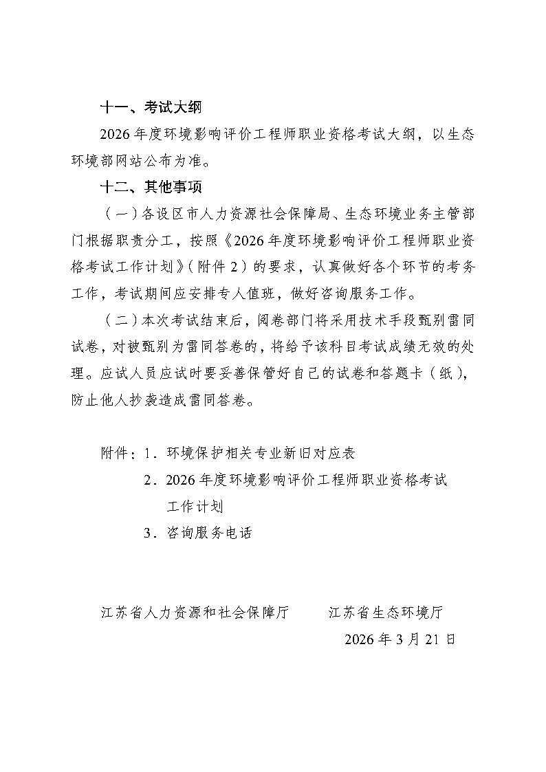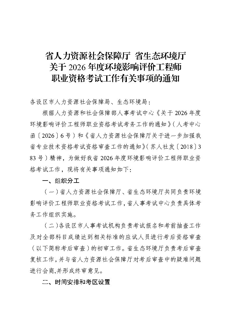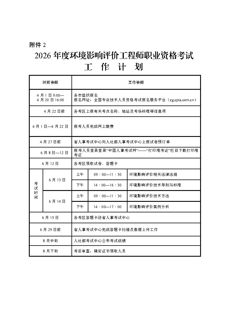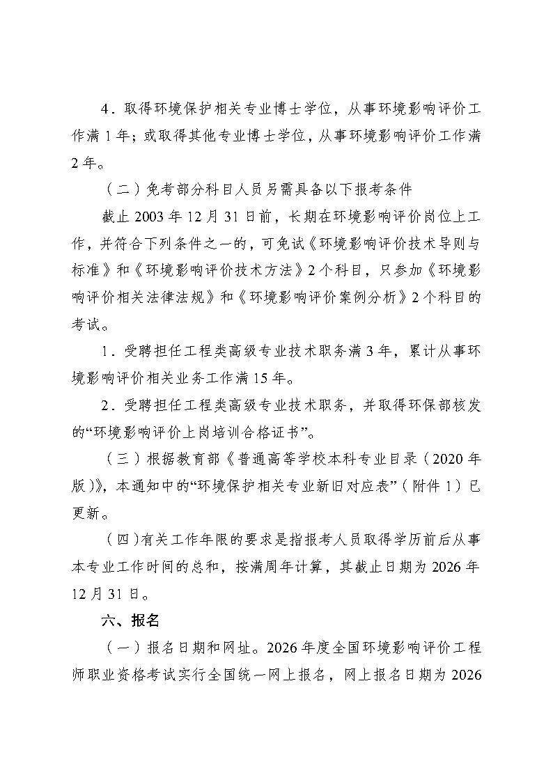 关于2026年度环境影响评价工程师职业资格考试工作有关事项的通知